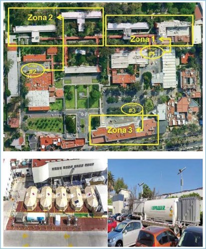 La reconversión hospitalaria es una de las principales estrategias en caso de emergencia sanitaria, tal como se había observado en otras pandemias y como sucedió en la de COVID-19. La necesidad de disponer de camas de hospital para la atención de casos graves puede ser enorme, por lo que la reconversión debe comprender la mayor cantidad posible de camas, así como cambios en la infraestructura arquitectónica y operativa, los recursos humanos y los insumos necesarios3. Si no es posible cumplir los requisitos citados, no se alcanza una reconversión segura y, por lo tanto, no puede implementarse. El caso del INER es interesante porque en la pandemia se cumplió y logró todo el proceso de reconversión hospitalaria de forma progresiva y en un tiempo récord. Esto significó disponer de 200 camas hospitalarias equipadas con ventiladores mecánicos, monitores avanzados de signos vitales y bombas de infusión, así como la ampliación de la red de gases medicinales, lo que requirió la instalación adicional de dos unidades móviles de oxígeno líquido con capacidad de 19,000 y 23,000 litros (Fig. 1), así como la contratación eventual de más de 1700 trabajadores de la salud y una gestión continua para disponer de medicamentos e insumos. Además, se sumó la instalación de un hospital de campo por parte de la Cruz Roja Mexicana, integrado por cinco carpas intercomunicadas, instalaciones propias e independientes de oxígeno médico, aire acondicionado, energía eléctrica y personal propio para funcionar como una unidad de medicina crítica durante las 24 horas.