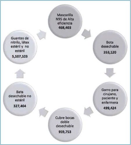 Figura 2. Equipo de protección personal y consumo anual durante la pandemia de COVID-19.