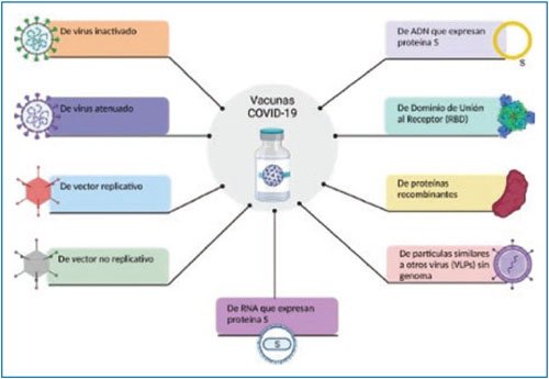 La pandemia causada por el SARS-CoV-2 ha sido el motor para el desarrollo de nuevas estrategias de vacunación, como son las basadas en RNA, y el empleo de otras que comenzaban a utilizarse, como son los vectores de adenovirus. Además, se han empleado varias estrategias ya conocidas con otras vacunas, como el uso de péptidos, proteínas recombinantes y virus inactivados, entre otras (Fig. 5)45.
